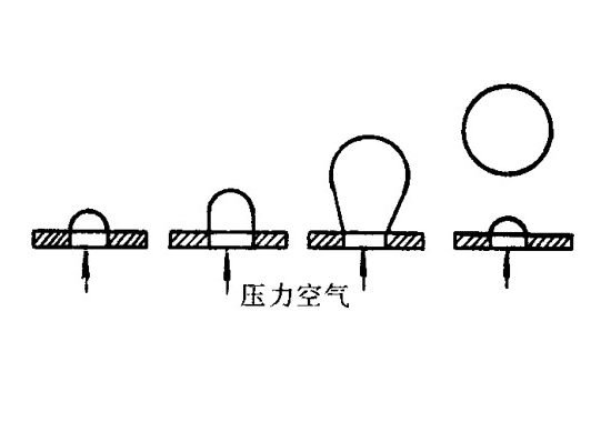 但该种气泡形成方法,需给入空气的压力要适当,如果压力过小,不利于空气透过,且气泡量少;如果压力过大,容易形成喷射气流而不成泡,并造成液面不稳定。