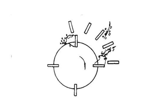 机械搅拌式浮选机生成气泡的关键是浮选机叶轮和定子,当叶轮转动时,叶片后方形成空穴,吸入空气,绕过叶片的矿浆会形成两列相向旋转的涡旋,这些涡旋会将空气吸至涡心处,形成气泡,在湍流脉动速度产生的动压力和剪切力作用下会把已形成的气泡分散成更小的气泡,离叶片越远的气泡分散的越小。